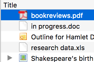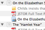 Items can have notes, files, and links attached to them. These attachments appear in the middle pane underneath their parent item. Attachments can be shown or hidden by clicking the arrow next to their parent item.