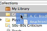 The left pane includes My Library, which contains all the items in your library. Right-click on My Library or click on the New Collection button () above the left pane to create a new collection, a folder into which items relating to a specific project or topic can be placed. Think of collections like playlists in a music player: items in collections are aliases (or “links”) to a single copy of the item in your library. The same item can belong to many collections at one time.