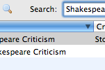 Quick searches show items whose metadata, tags, or fulltext content match the search terms and are performed from the Zotero toolbar. Clicking the spyglass icon to the left of the search box opens the Advanced Search window, allowing for more complex or narrow searches.